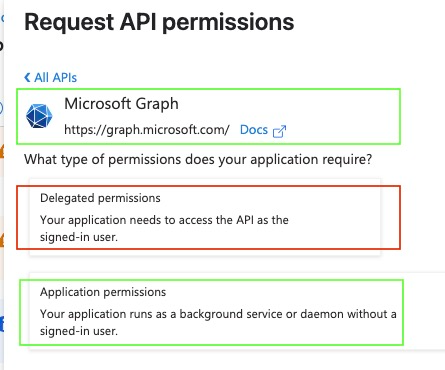 - Critical: Choose "Application permissions" (not Delegated permissions)